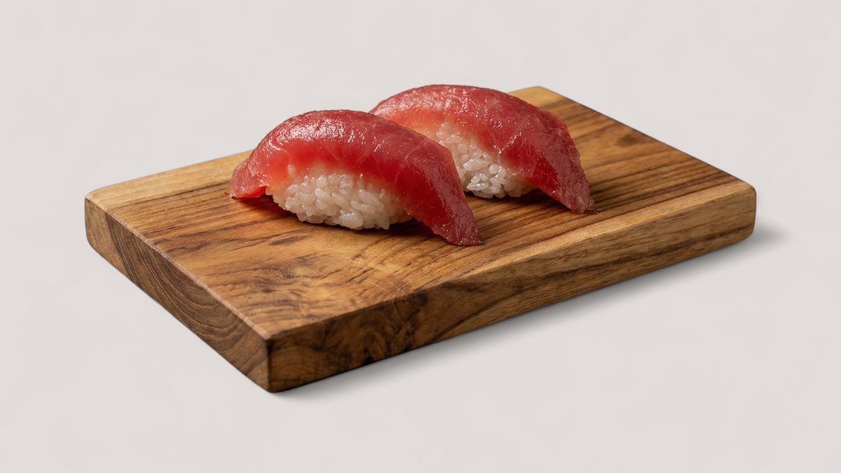 fein gewürfelter Thunfisch, umhüllt von Sushi-Reis und Nori