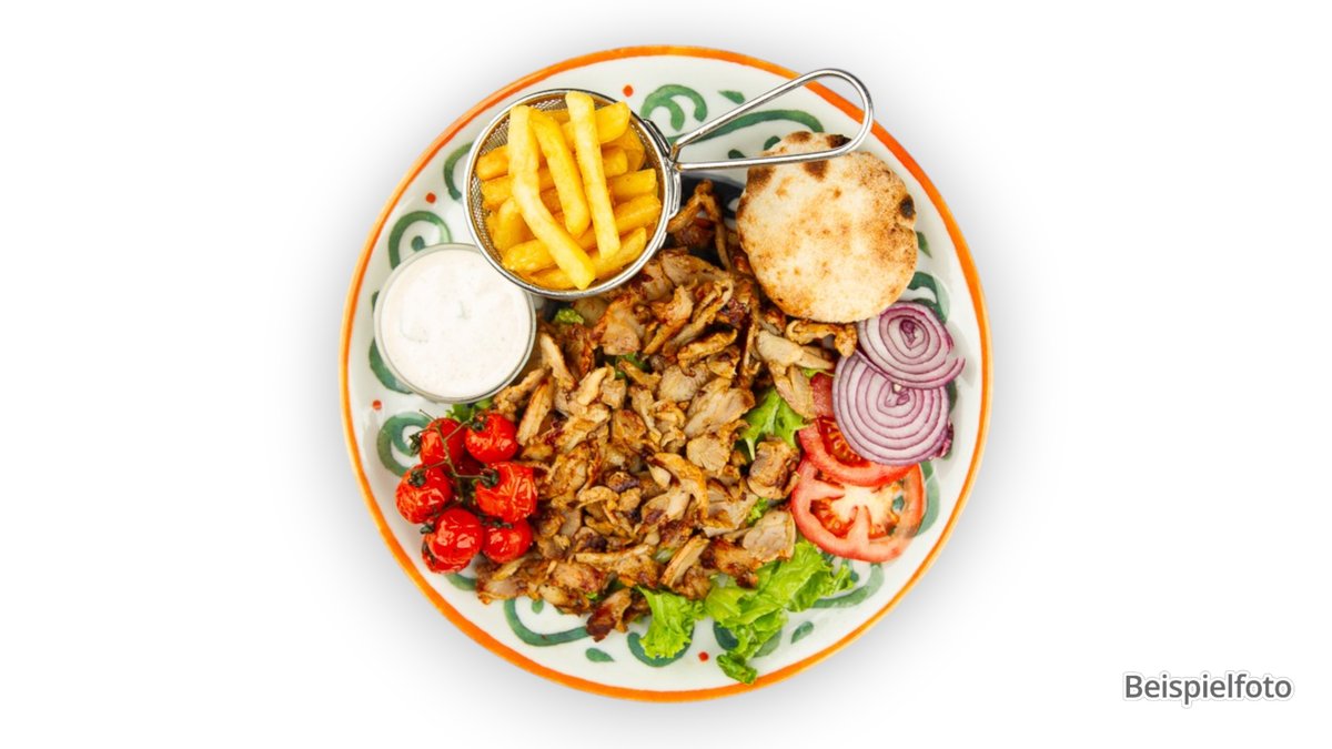 mit Gyros, Schweine-Souvlaki und Hacksteak