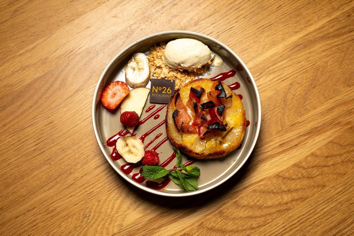 leicht geräuchert, aus dem Baskenland mit Salatblättern und geröstetem Brot