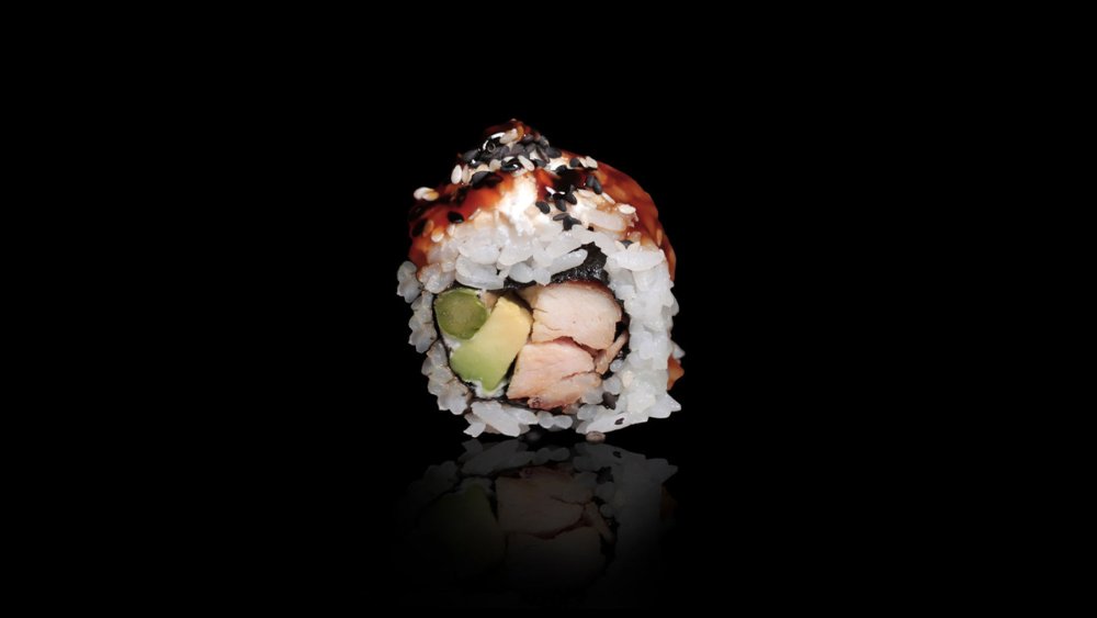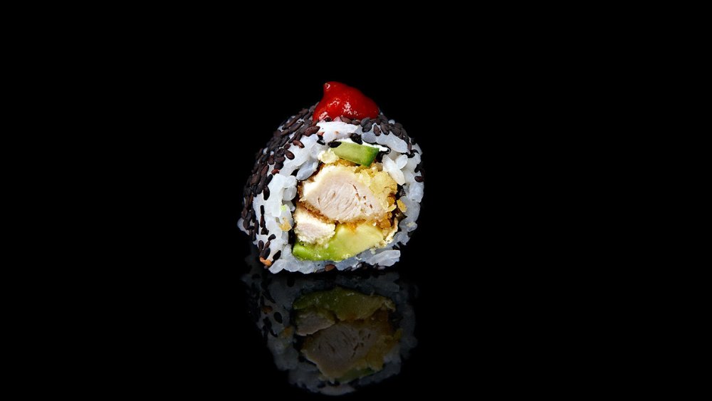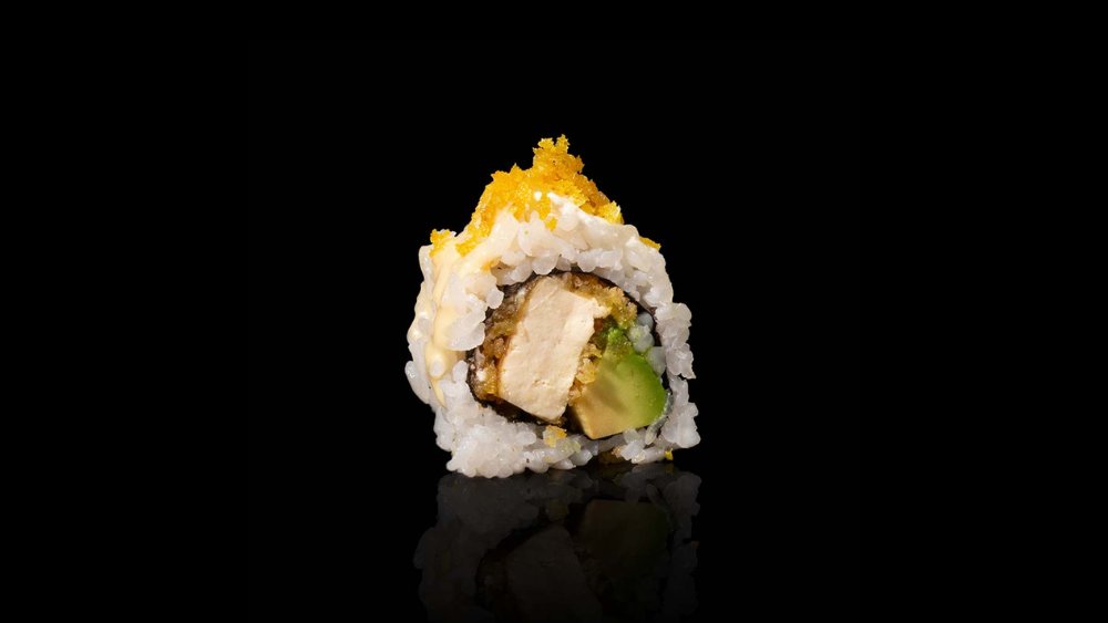 mit Avocado, Frischkäse, Kabayaki-Mayonnaise und Curry-Panko