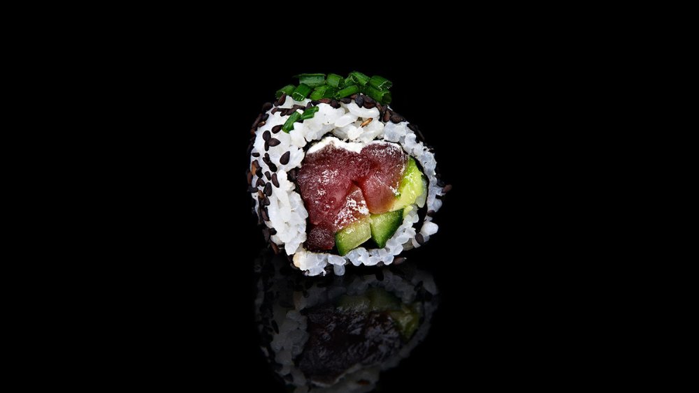 mit Thunfisch, Gurken, Avocado, Frischkäse, Schnittlauch und Sesam