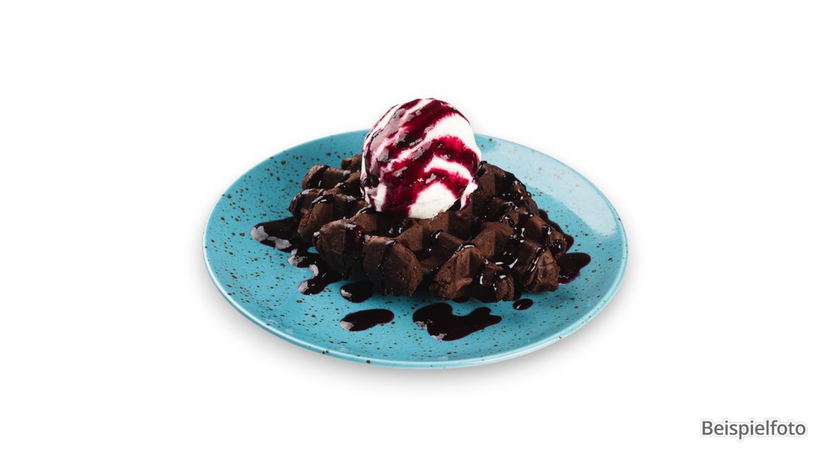Waffel mit heiĂźen Kirschen und VanillesoĂźe