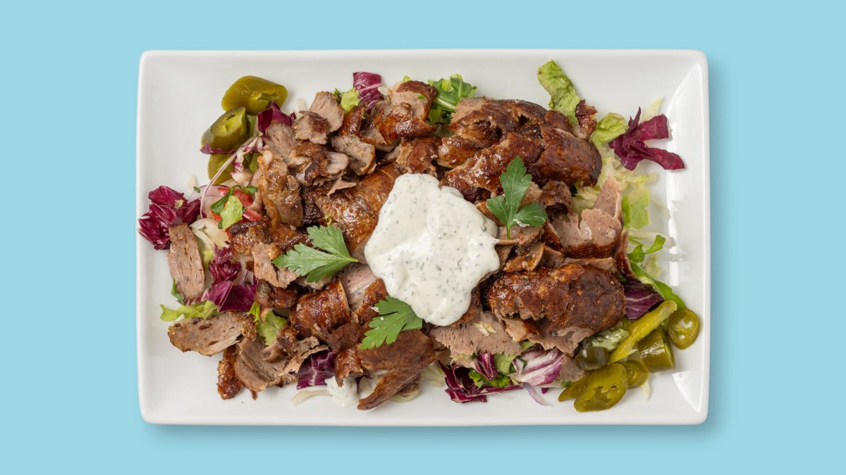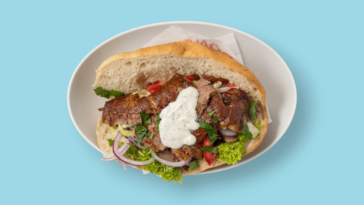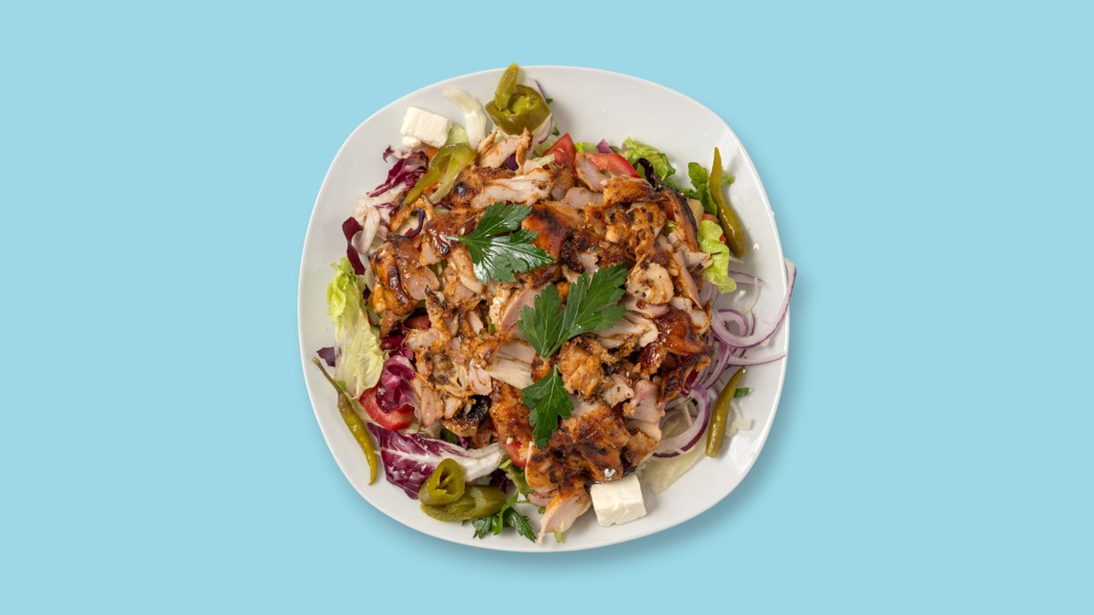 mit Drehspießfleisch deiner Wahl und gemischtem Salat