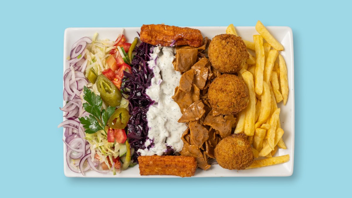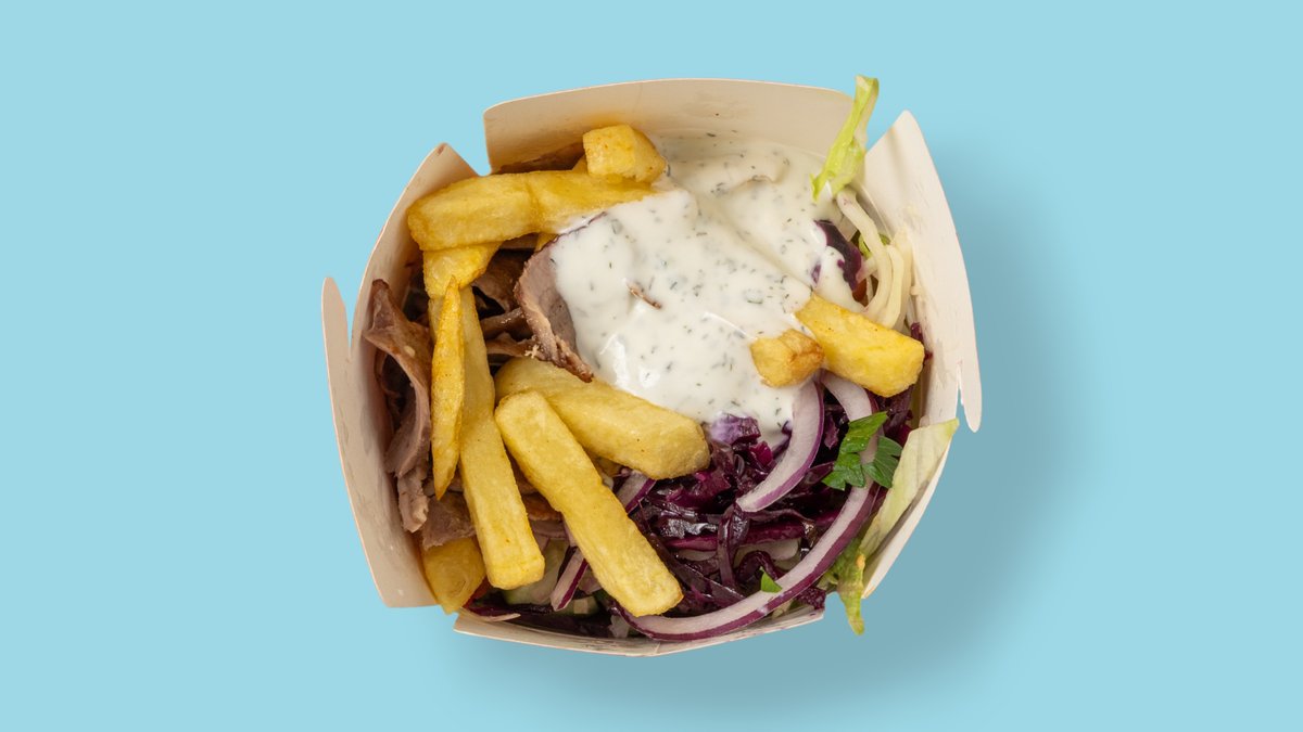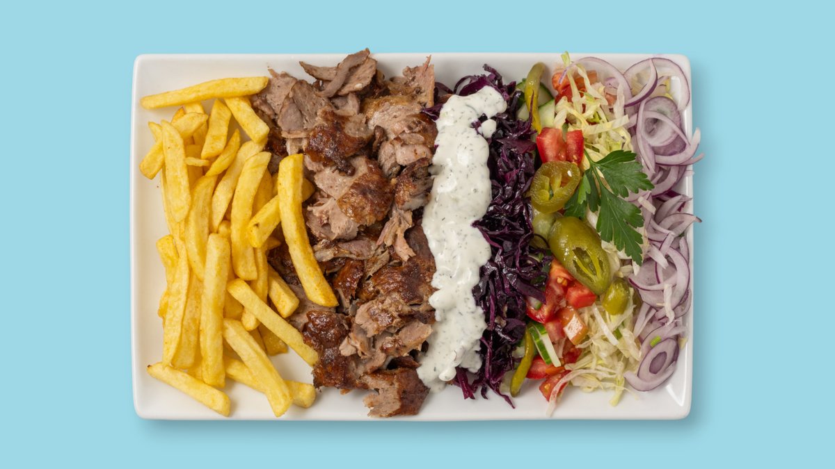 mit Dönerfleisch deiner Wahl, Salat, Soße und einer Beilage deiner Wahl