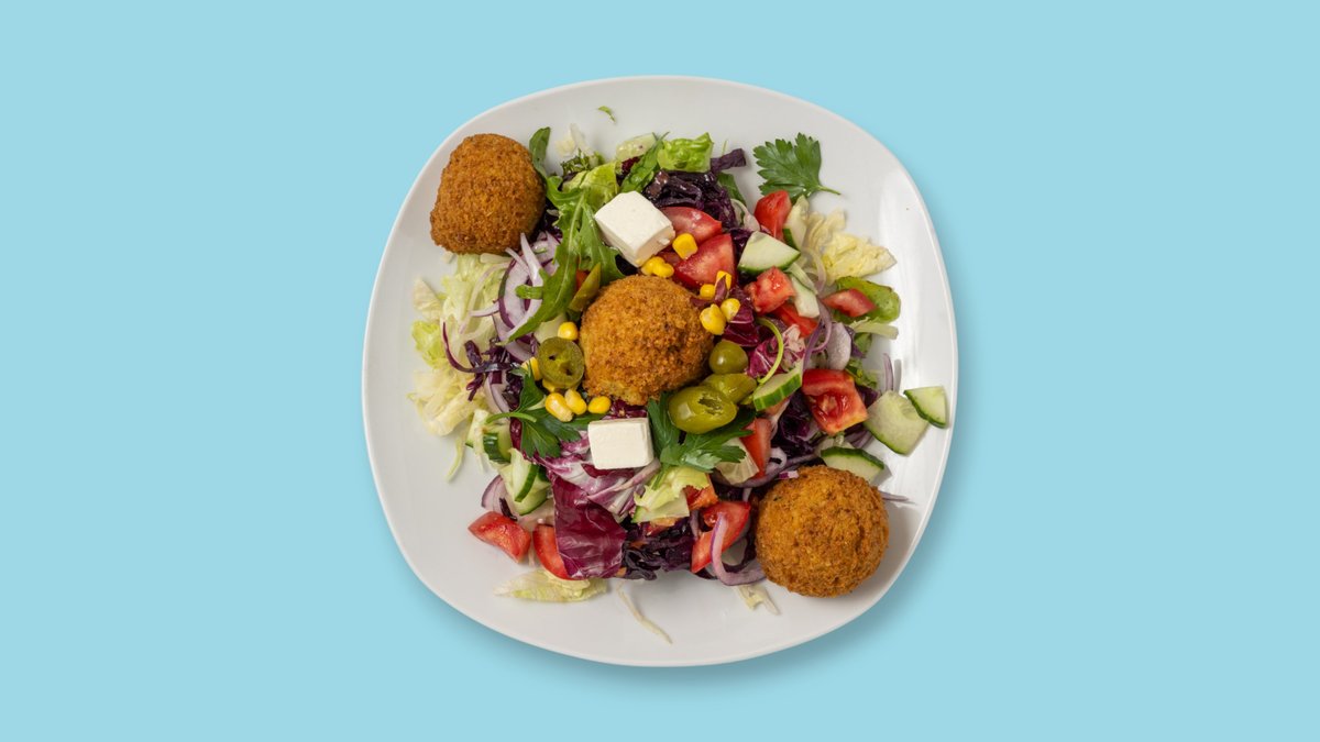 mit 3x Falafeln, Salat, Soße und einer Beilage deiner Wahl