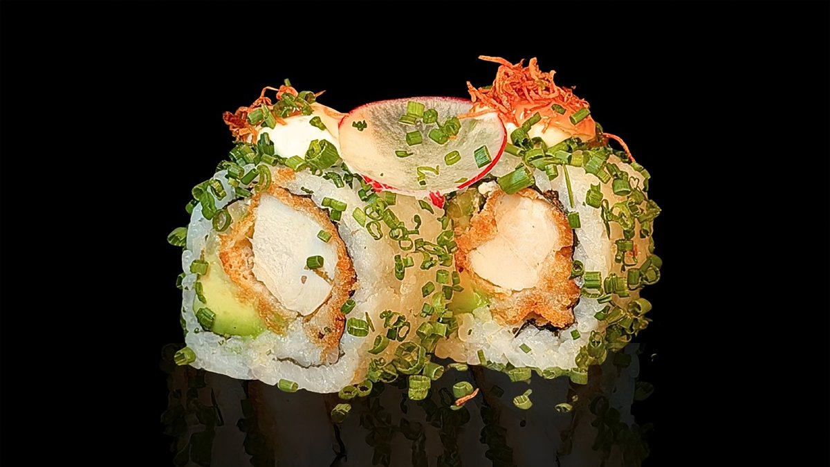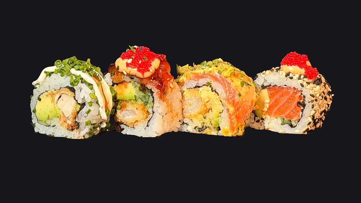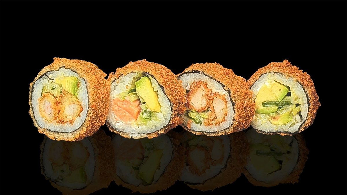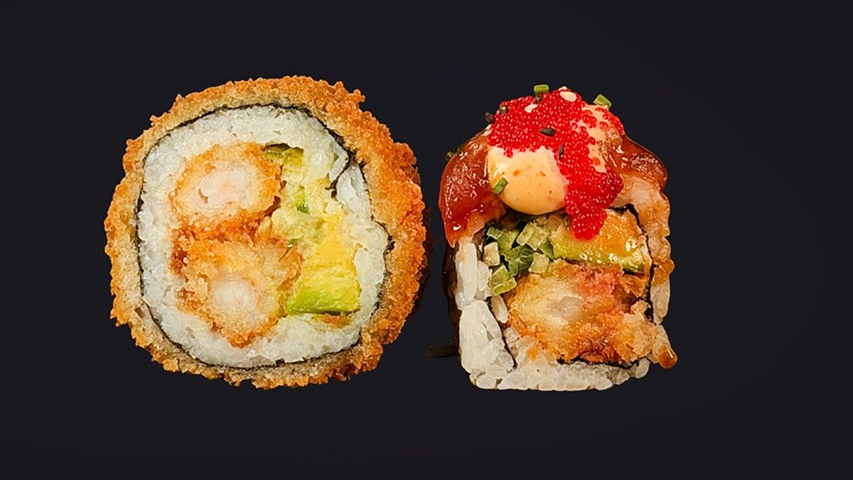 jede Portion enthält 6 Stück und wird mit Frischkäse, Schnittlauch, Sweet Chili Sauce, scharfer Mayonnaise, Teriyaki-Soße und Avocado zubereitet („Crispy Shrimps Roll“ wird ohne Frischkäse zubereitet, „Crispy Veggie Roll“ wird ohne Avocado zubereitet und „Crispy Ebi Roll“ wird ohne Schnittlauch, Sweet Chili Sauce, Teriyaki-Soße und scharfe Mayonnaise zubereitet)