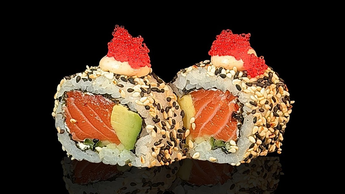 mit Premium-Lachs, Avocado, Frischkäse, Sesam und hausgemachter Soße