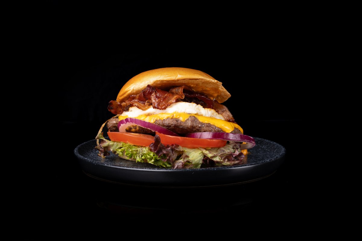 mit zwei Scheiben schmelzendem Chester, 140 g perfekt gegrilltem Rindfleisch, zwei knuspriger Speck-Streifen und einem Spiegelei