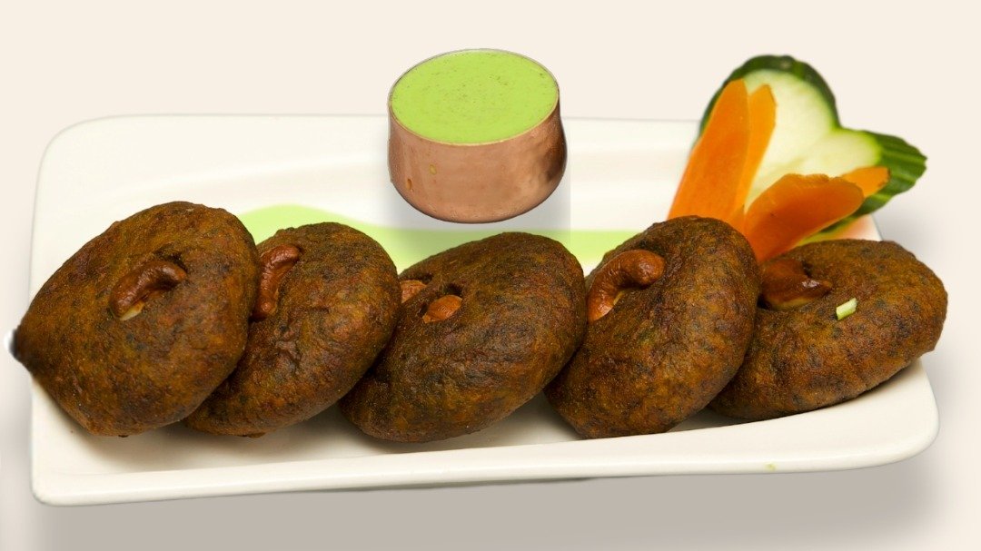 5 Stück Kababs aus einer Mischung von Spinat, Erbsen und Gewürzen, perfekt gewürzt und goldbraun gebraten