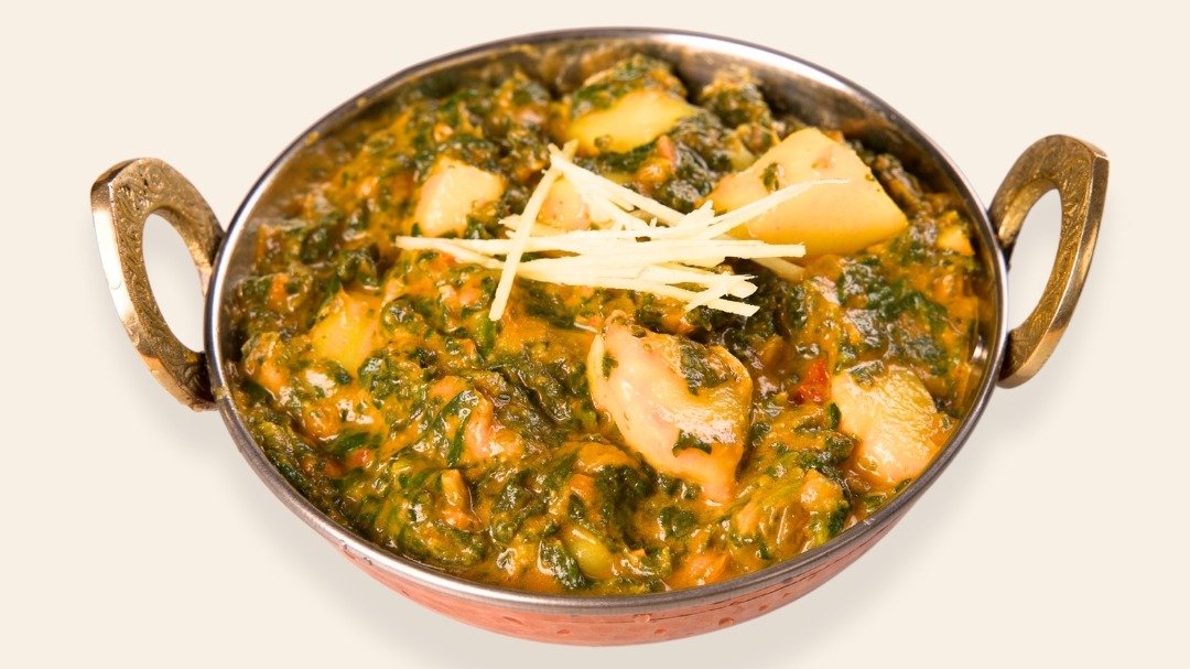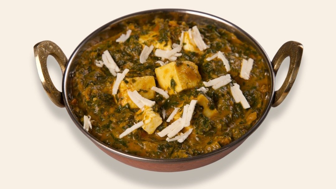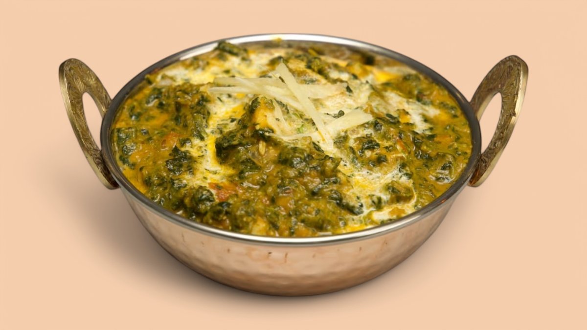 Paneer-Würfel in fein gewürzter Spinatsoße, verfeinert mit indischen Gewürzen