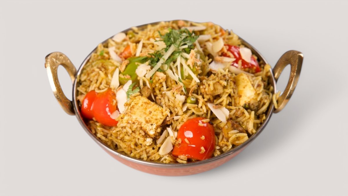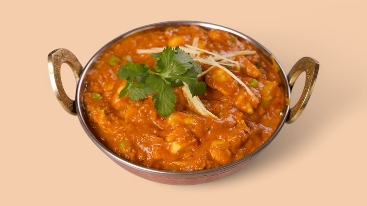 Paneer-Würfel in würziger Tomaten-Gemüsesoße mit Koriander und Garam Masala