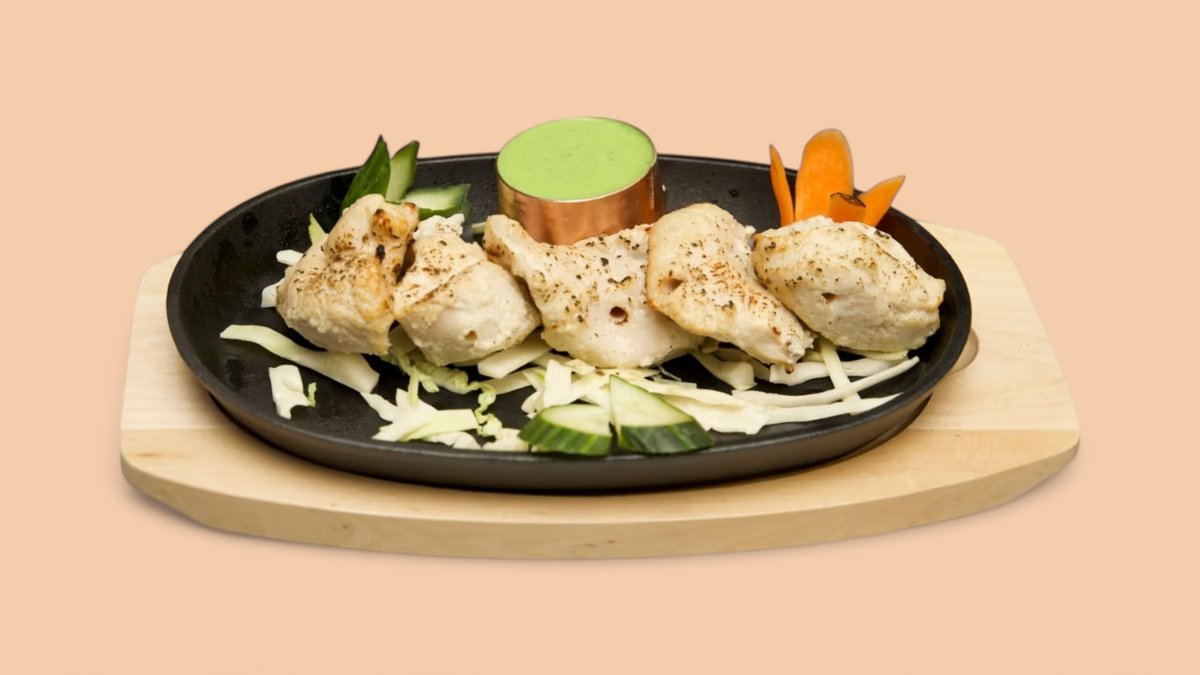 5 Stück zarte Hähnchenstücke, mariniert in einer würzigen Joghurt-Mischung und gegrillt