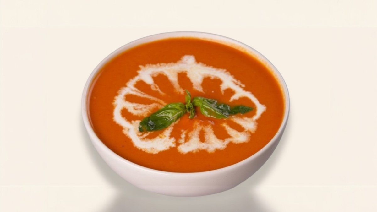 Suppe mit frischen Tomaten, aromatischem Basilikum und Sahne