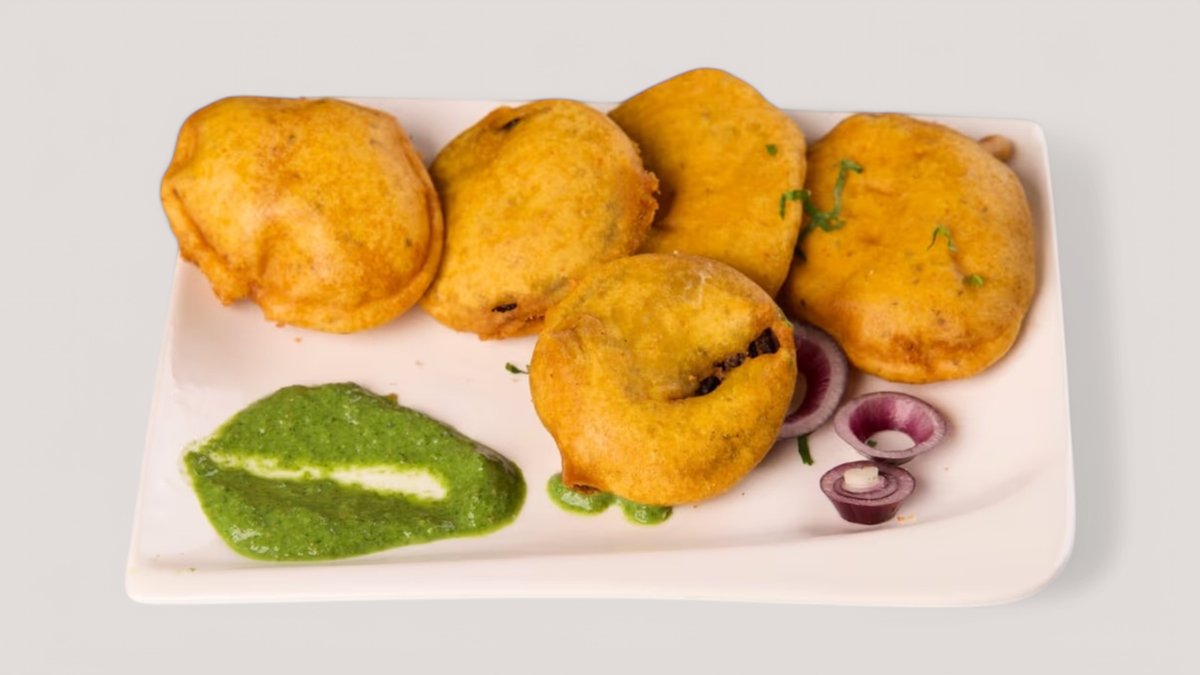 5 Stück knusprig frittierte Gemüsestücke in einer aromatischen Kichererbsenmehlpanade
