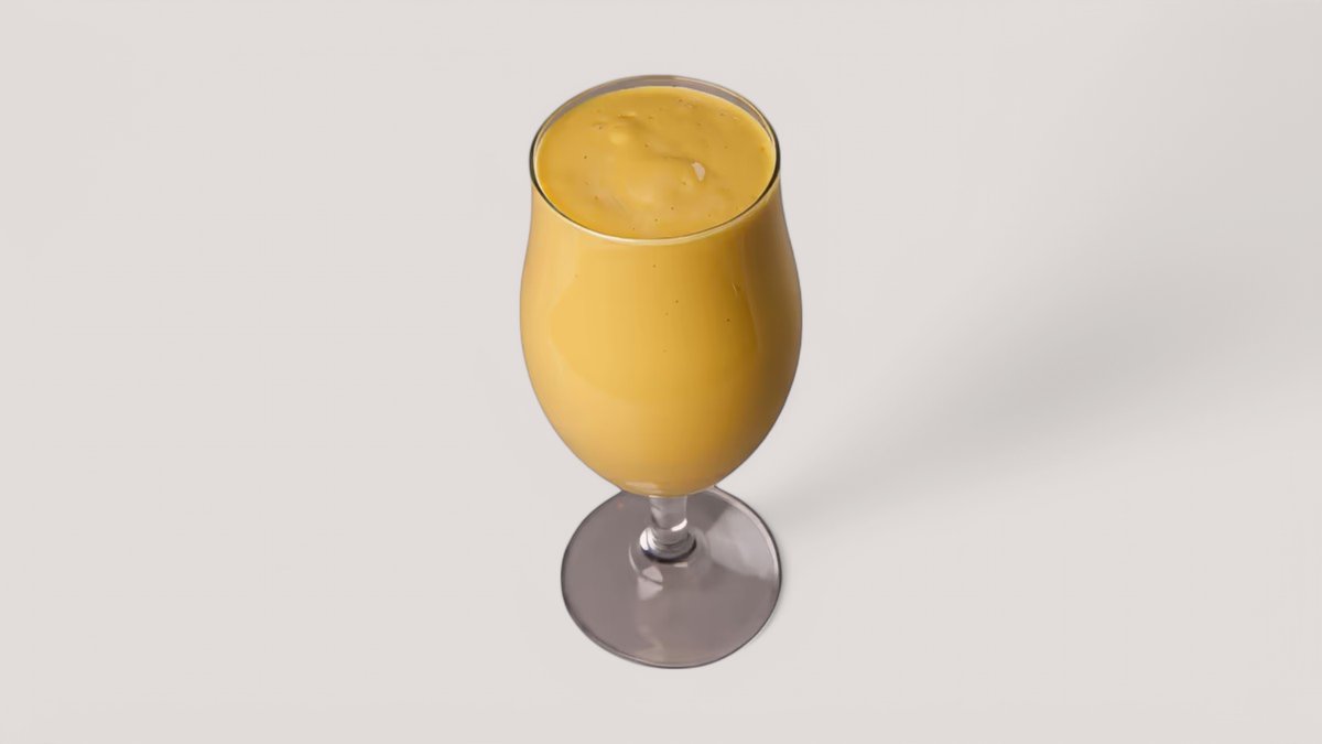 Indisches Joghurtgetränk mit pürierter Mango, süß und erfrischend.