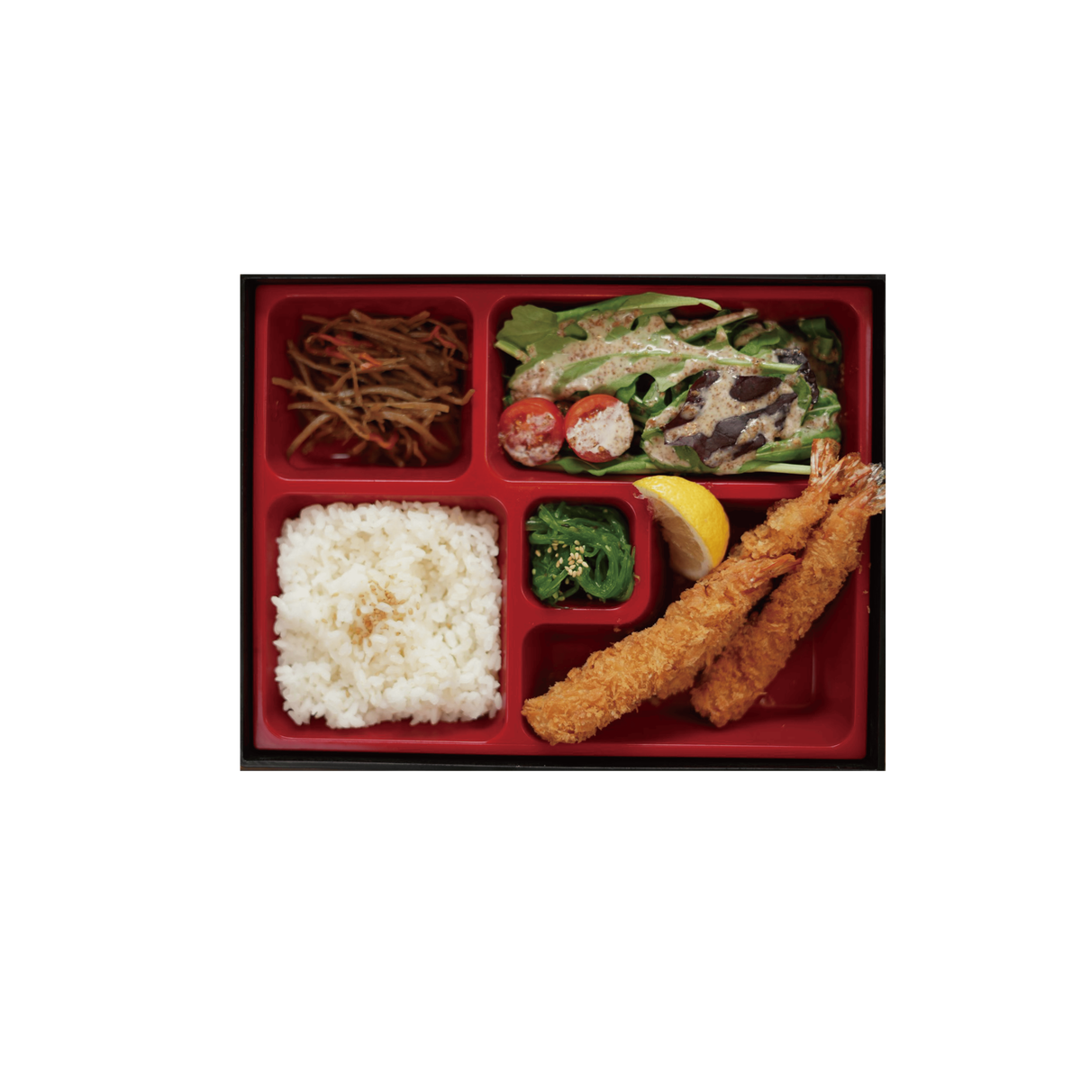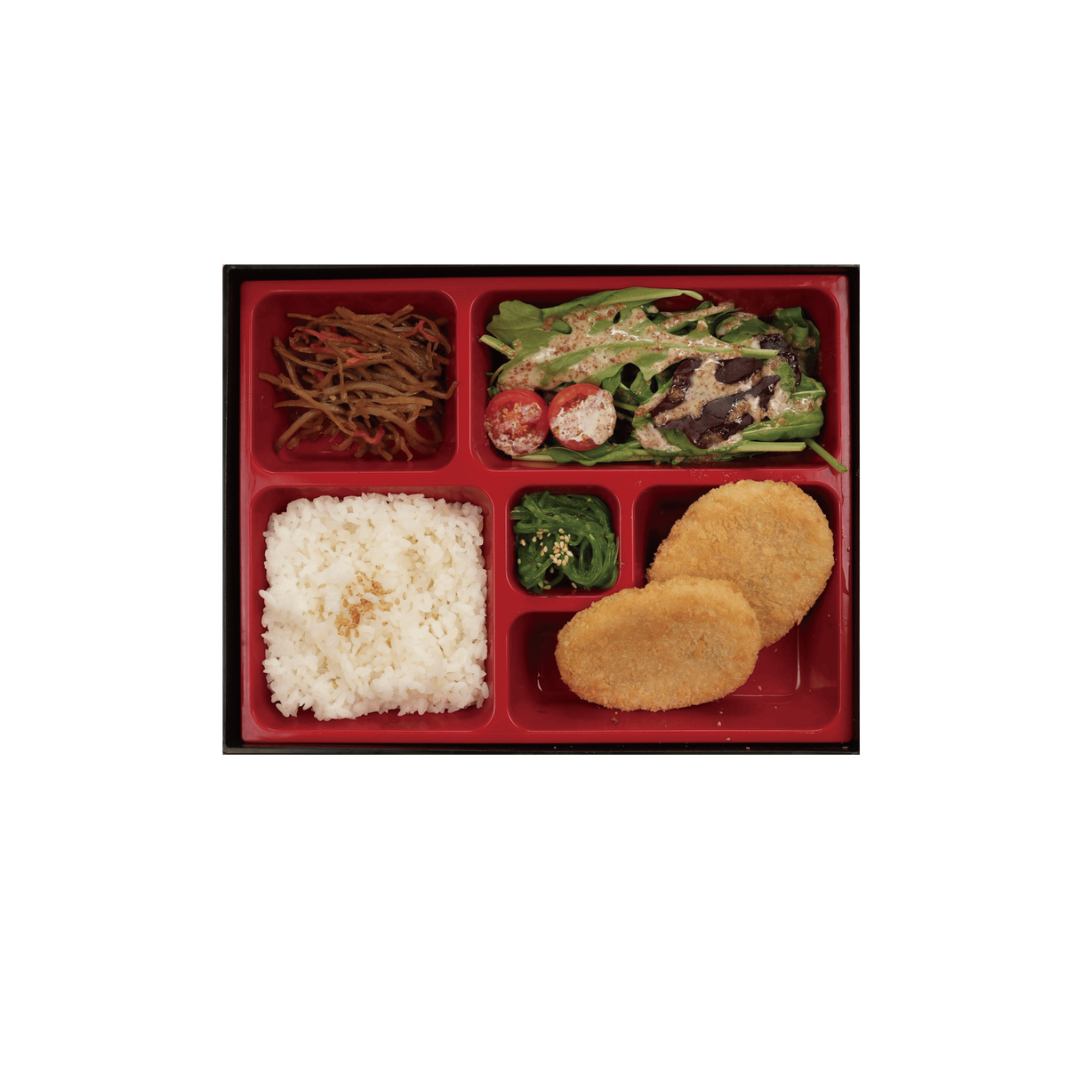 alle Bentos werden mit Salat, Kinpira Gobo, Goma Wakame, Reis und Suppe serviert