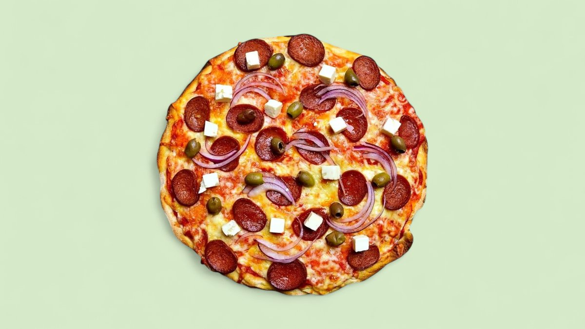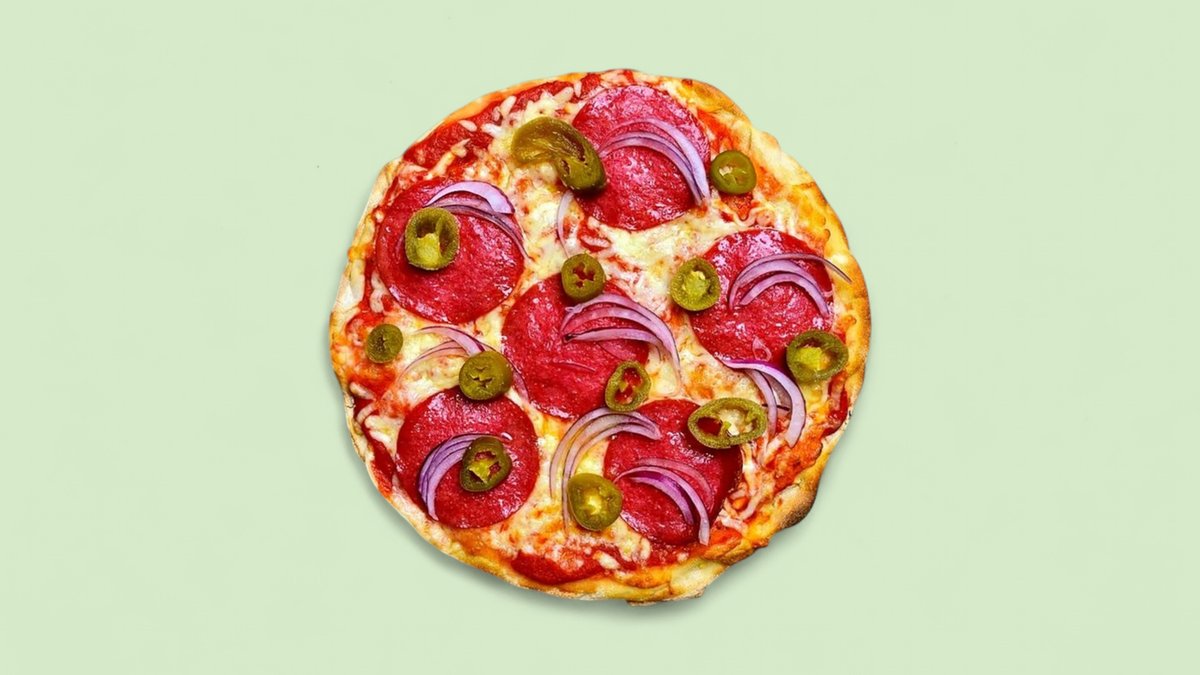 mit Rindersalami, roten Zwiebeln und Jalapeños