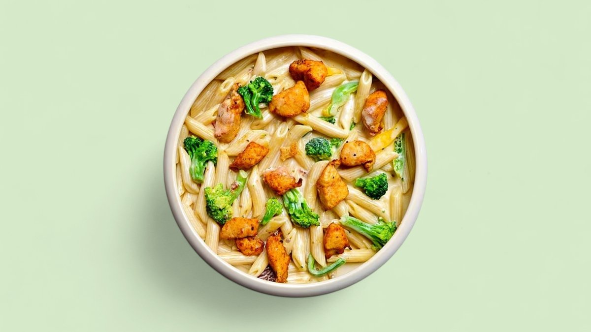 mit Käse-Sahne-Soße, Hähnchen, Brokkoli und Paprika