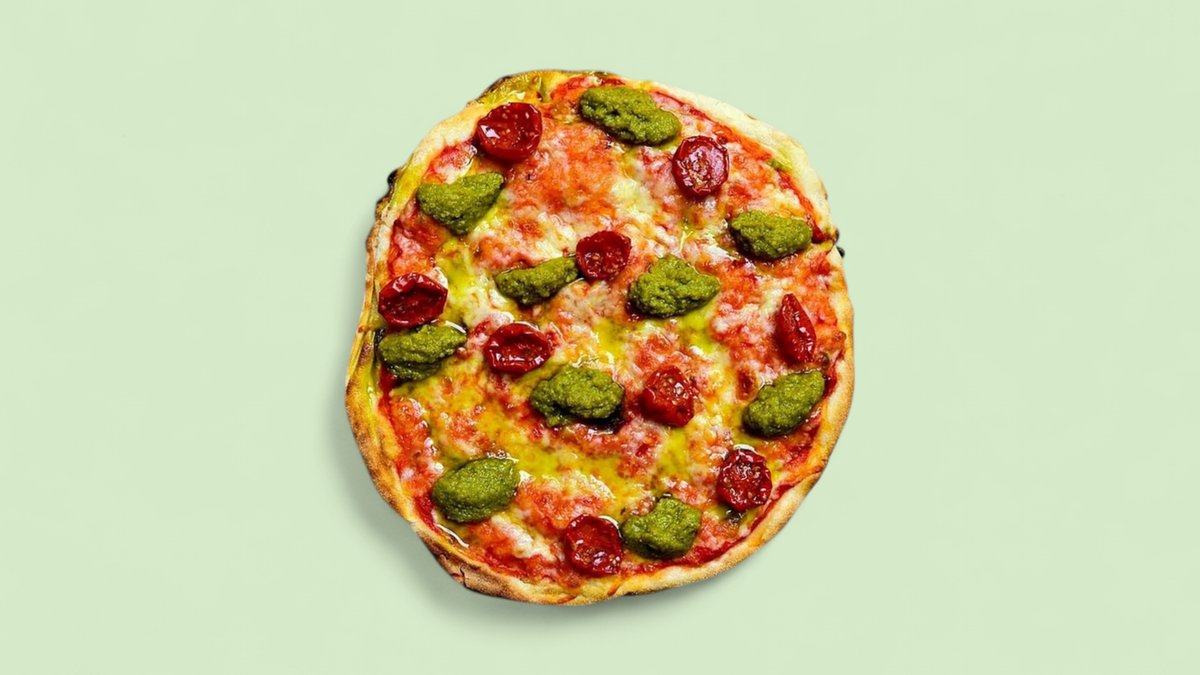mit getrockneten Tomaten, Mozzarella und grünem Pesto