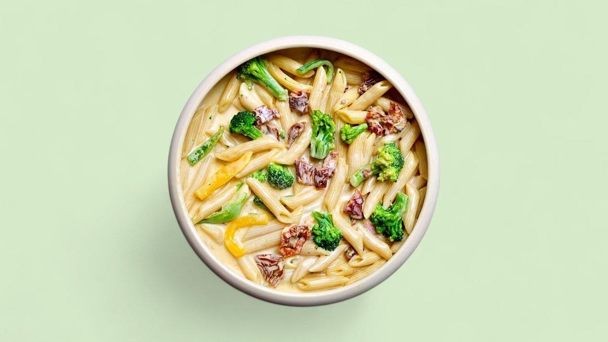 mit Käse-Sahne-Soße, getrockneten Tomaten, Paprika und Brokkoli