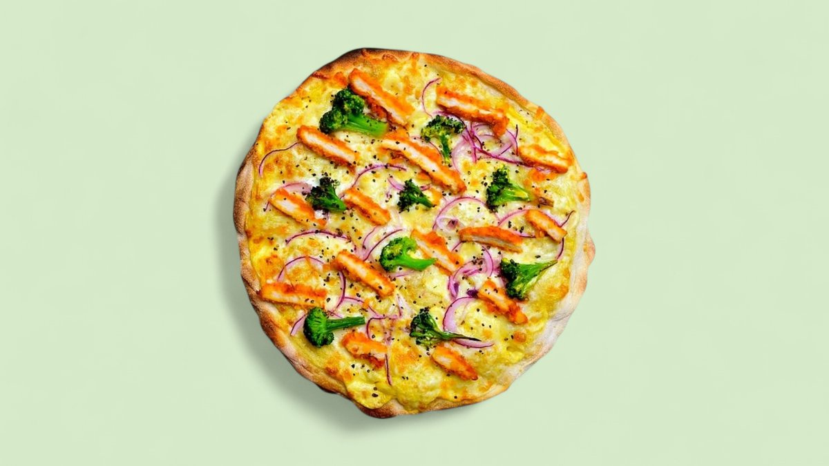 mit knusprigen Hähnchen, roten Zwiebeln, Brokkoli und Sauce hollandaise