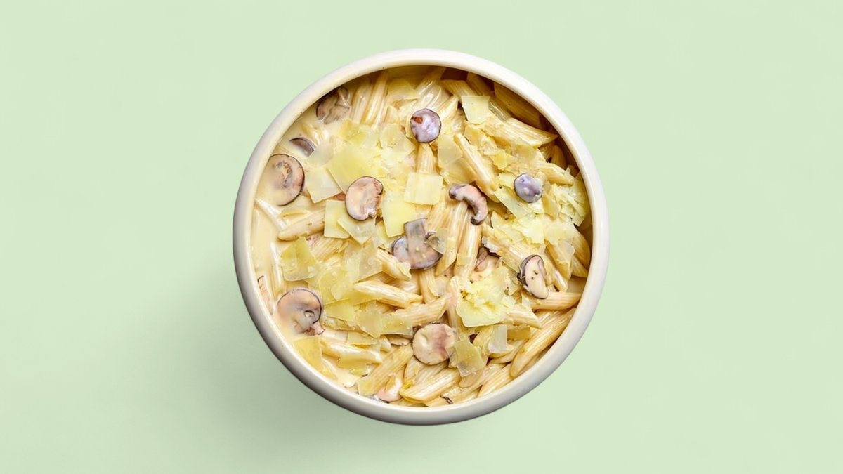 mit Käse-Sahne-Soße, Champignons, Grana Padano und Trüffelöl