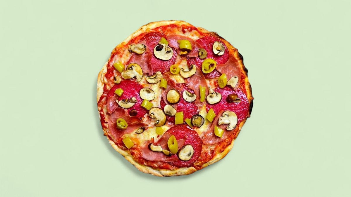 mit Rindersalami, Rinderschinken, milde Pfefferoni und Champignons