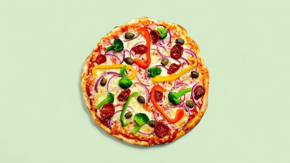 mit Brokkoli, Paprika, Mais, Oliven und roten Zwiebeln