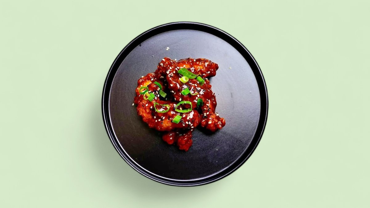 mit Teriyaki Hähnchen, Sesam, Tomaten, roten Zwiebeln und Teriyaki-Soße