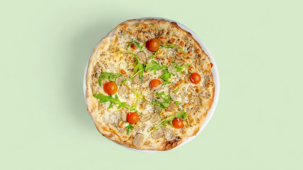 Genießen Sie unsere Trüffel-Pizza 🍕! Mit cremiger Creme Fraiche, Mozzarella, edlen Trüffeln, frischen Pilzen und knackigem Rucola.