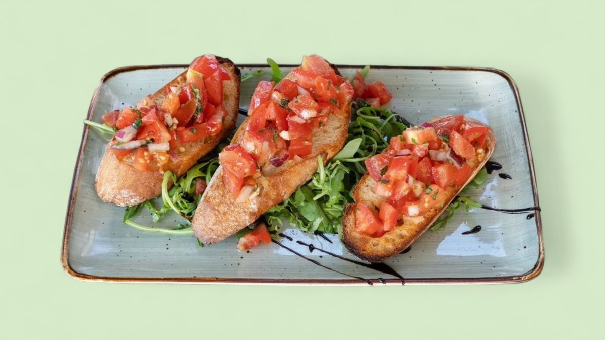 Bruschetta Classico - Genießen Sie dieses Antipasti mit frischen Tomaten, knackigen Zwiebeln und aromatischem Knoblauch.