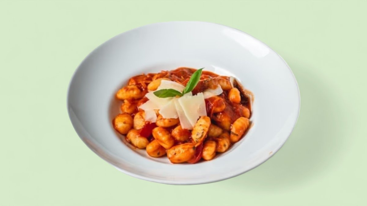 Erleben Sie die italienische Küche mit unseren Gnocchi Sorrentino, serviert mit cremiger Burrata, frischen Kirschtomaten, aromatischem Basilikum und Tomatensoße.