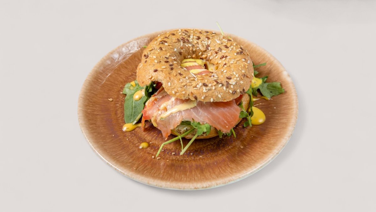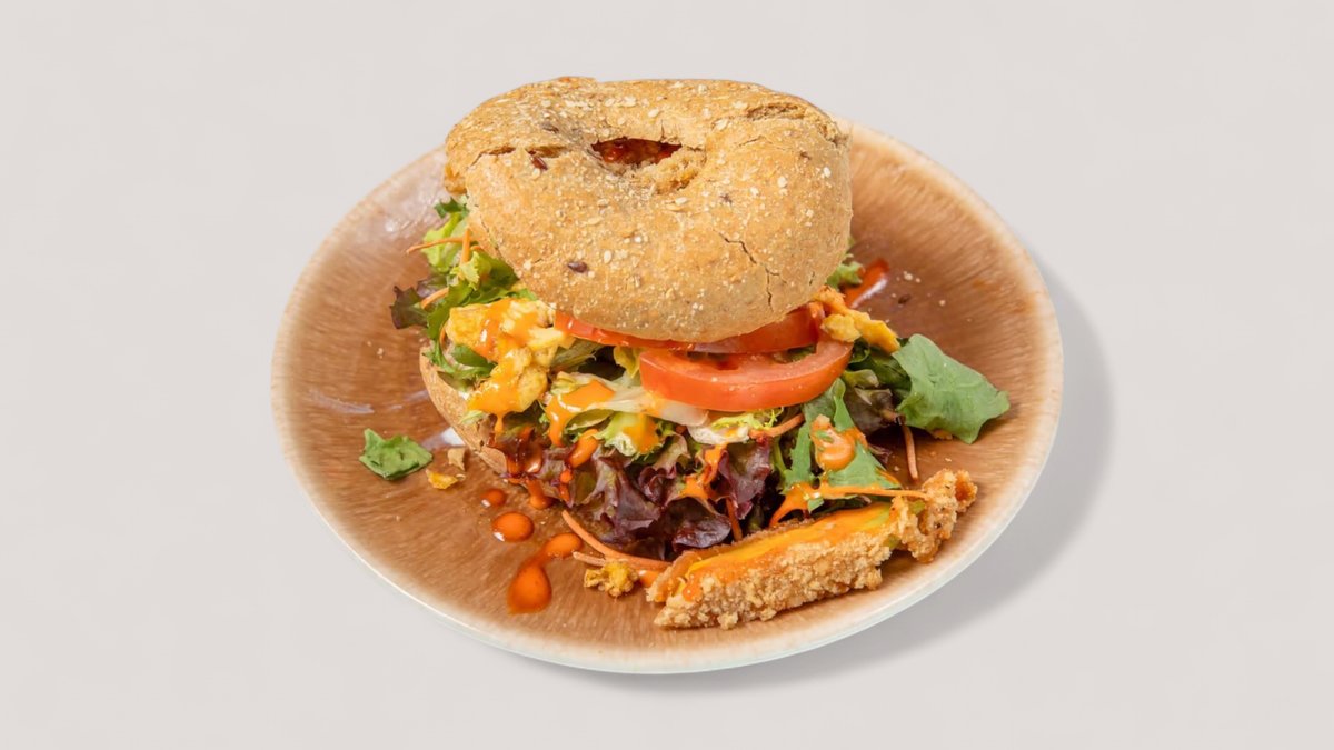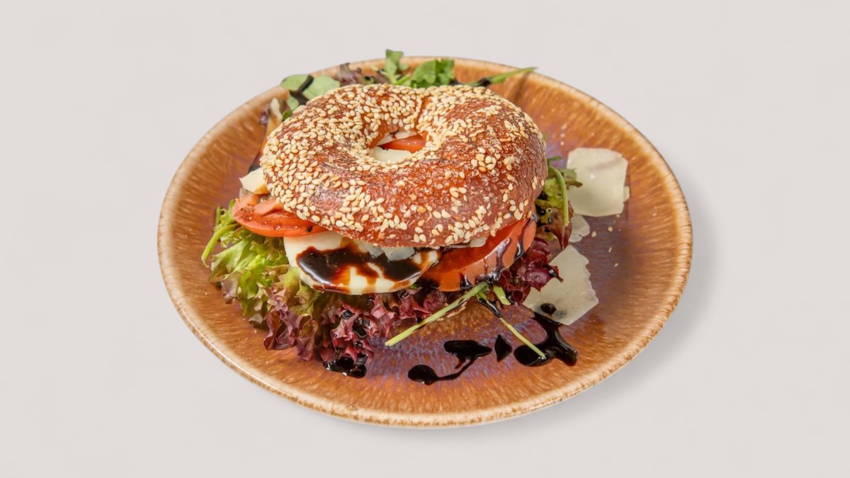 alle Bagels werden mit einer Brotsorte deiner Wahl, Frischkäse und Tomaten zubereitet („Plant Power Bagel” wird ohne Frischkäse zubereitet)