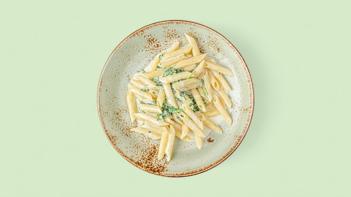 vegetarisch mit Gorgonzolakäse-Soße und Spinat