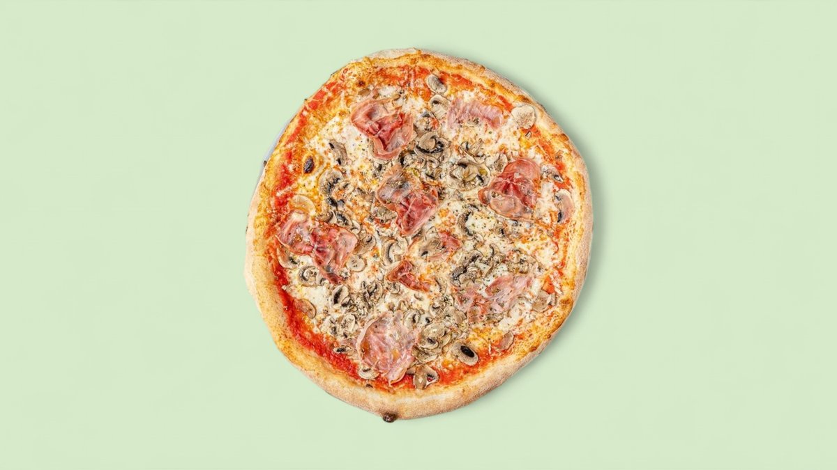 mit Schinken, Champignons, Tomatensoße und Mozzarella