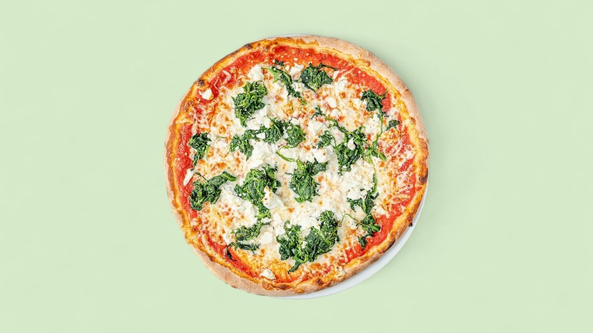 vegetarisch mit Blattspinat, Schafskäse, Tomatensoße und Mozzarella