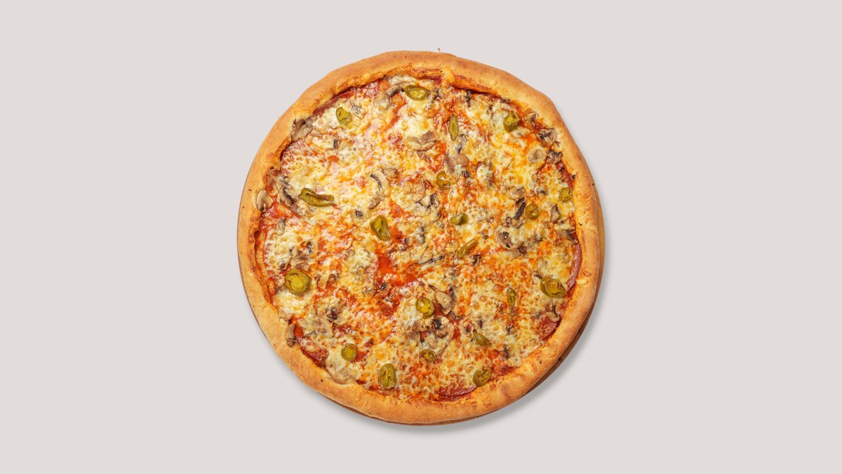 mit würziger Pepperoni-Salami vom Schwein, roten Zwiebeln, Oliven, frischem Paprika und aromatischem Parmesan