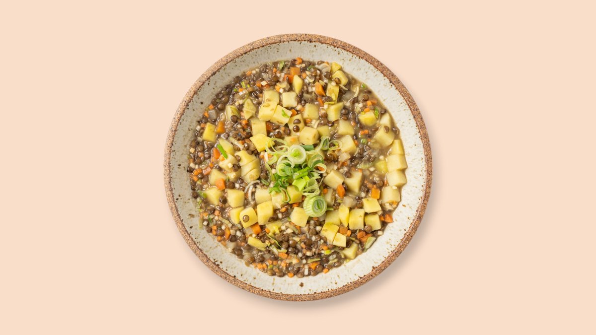 Gesund und lecker bestehend aus Linsen, Kartoffeln und einem Schuss Balsamico-Essig