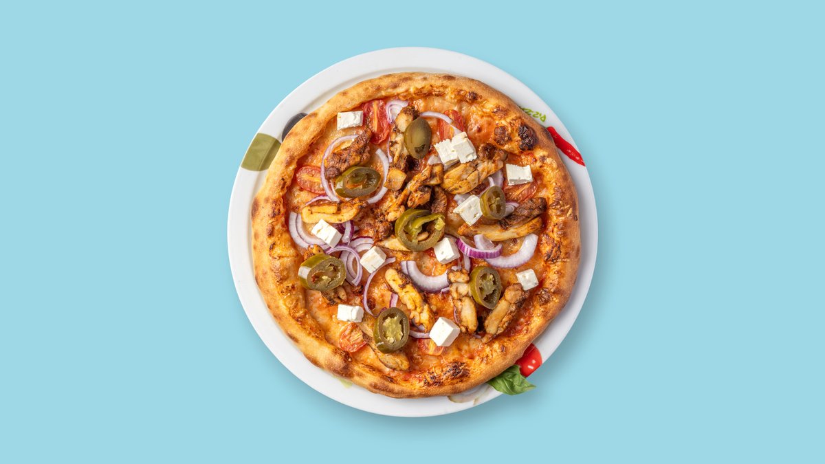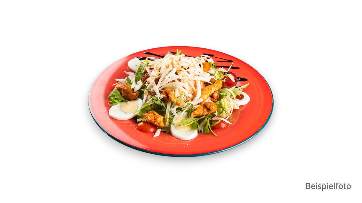 mit Hähnchenbruststreifen, Schafskäse, Peperoni und Ei
