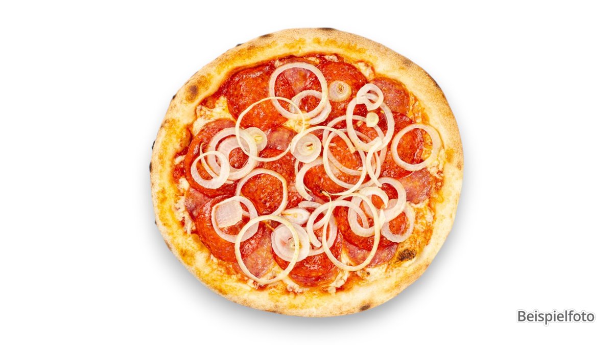 mit Tomaten, Käse, Salami vom Rind, Paprika, Champignons und Zwiebeln