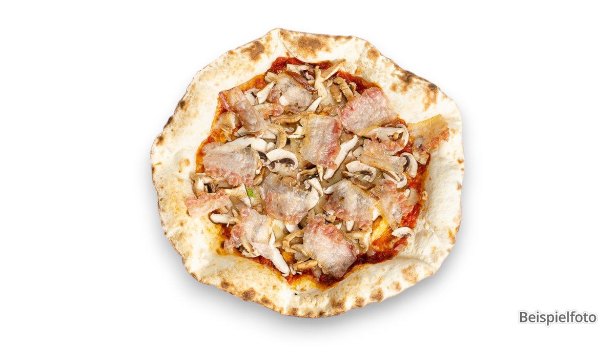mit frischen Tomaten, Speck vom Putenfleisch, Champignons und Zwiebeln