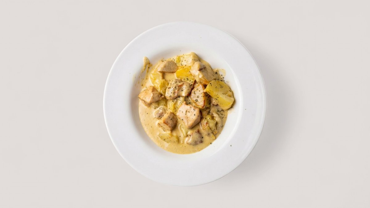 mit Currysoße, Hähnchenbrust und Ananas