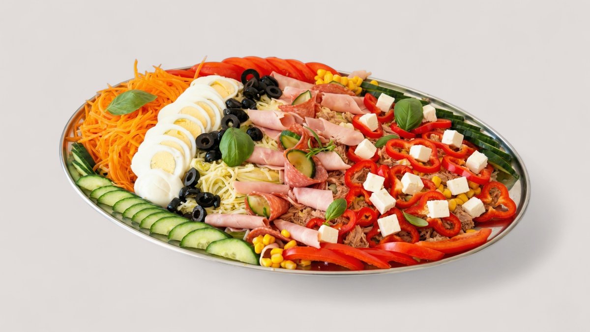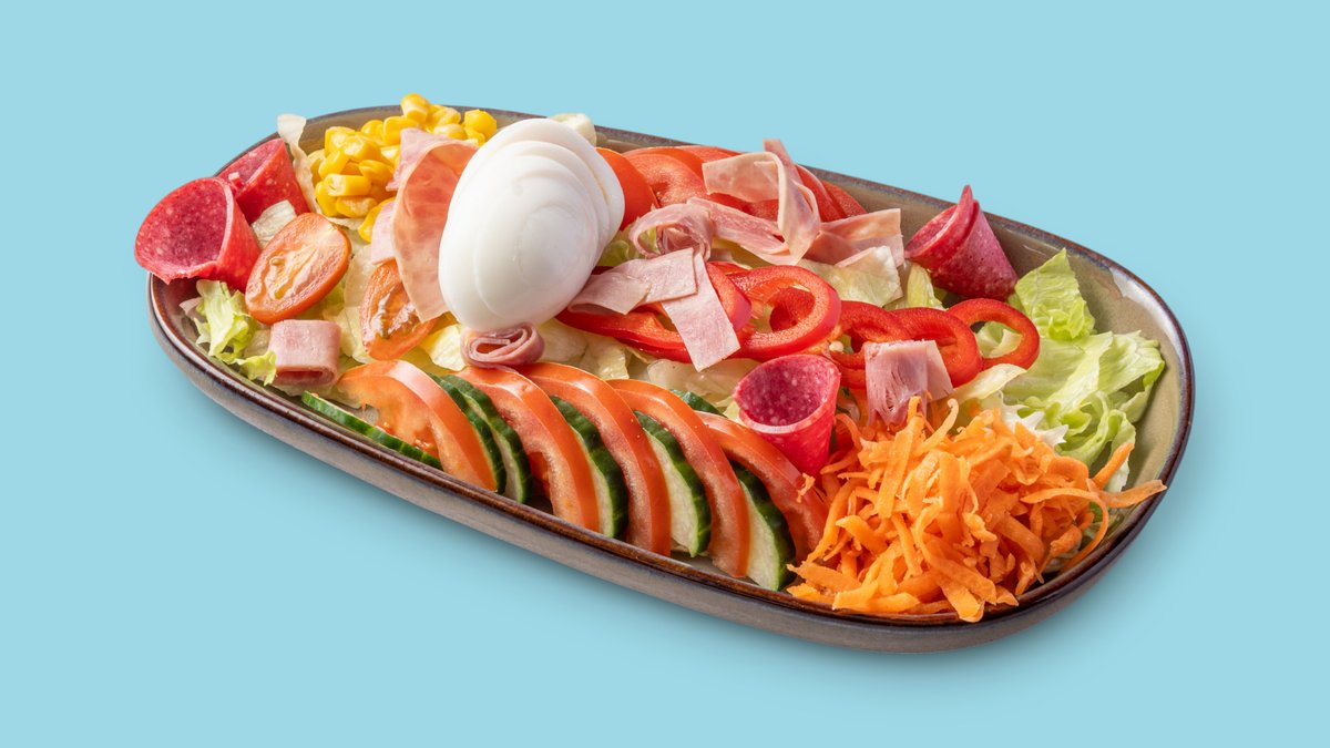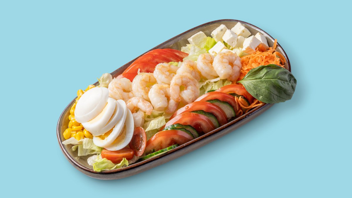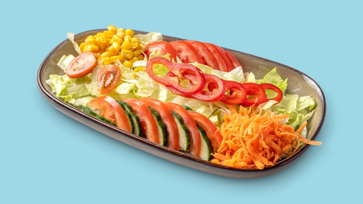 mit Eisbergsalat, Paprika, Tomaten, Möhren, Gurken, Mais und in einer Größe deiner Wahl