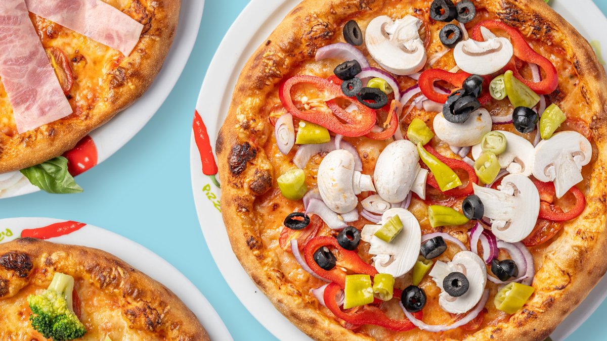 alle Pizzen werden mit Oregano zubereitet und in einer Größe deiner Wahl serviert