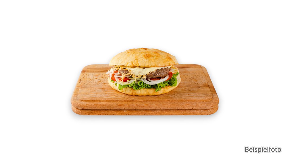 knuspriges Chickenfilet mit Halal-Speck und Käse im Burgerbun