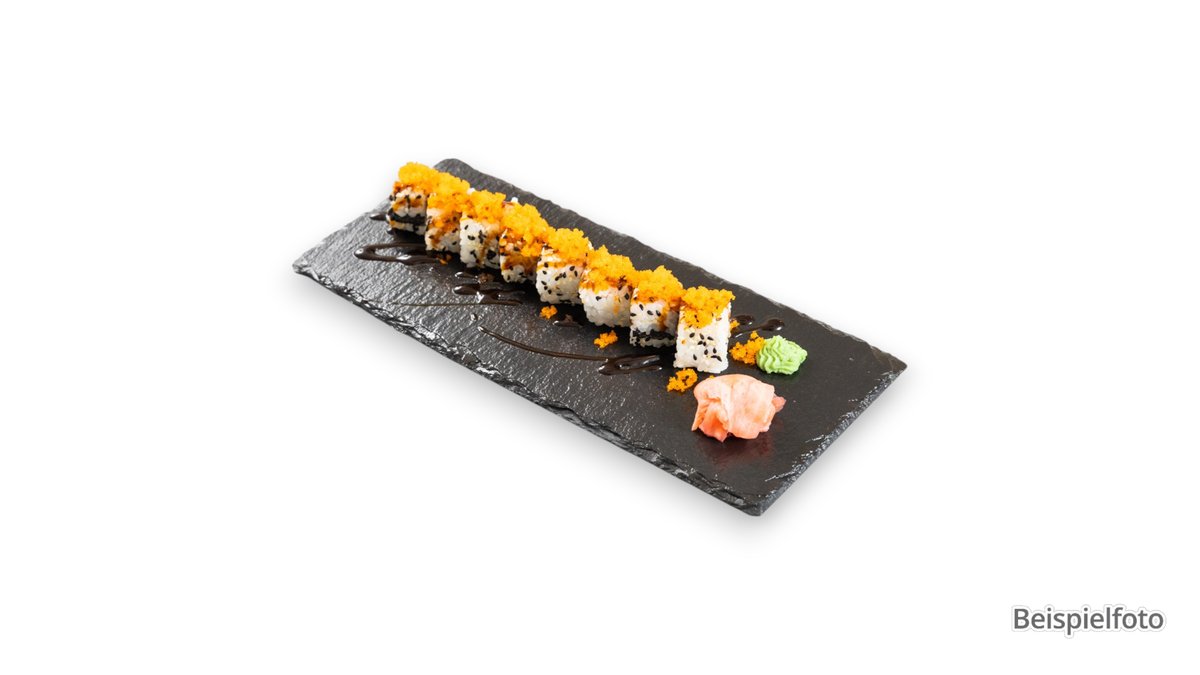 mit Tempura Garnelen und Flugfischkaviar