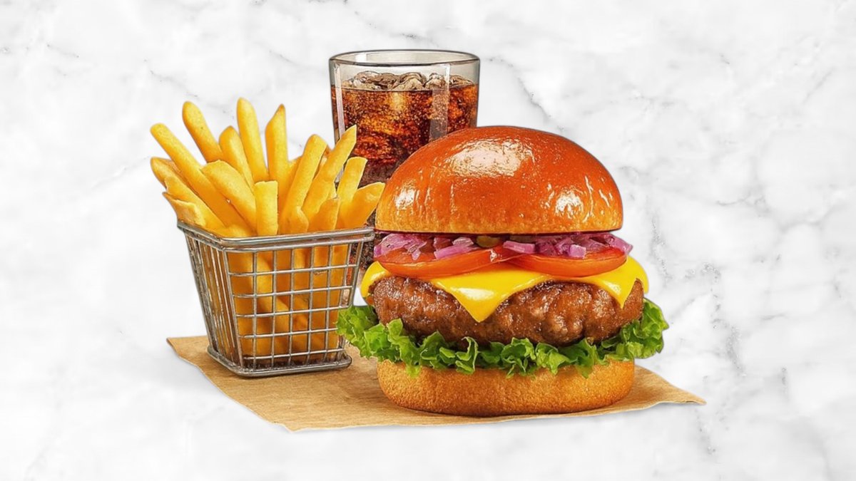 alle Burger Menüs werden mit einer Beilage deiner Wahl und einem alkoholfreien Getränk 0,33 l deiner Wahl serviert