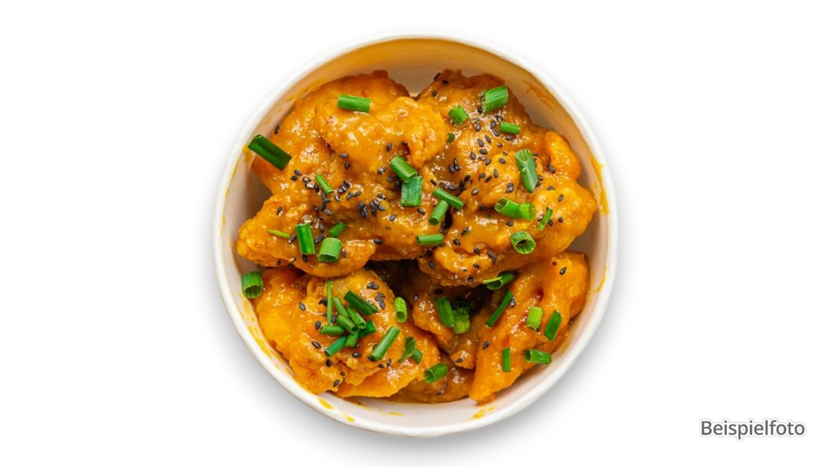 mit Hühnerbrustfilet, mariniert in exotischen Gewürzen, gegrillt und in Spezialsoße gebraten