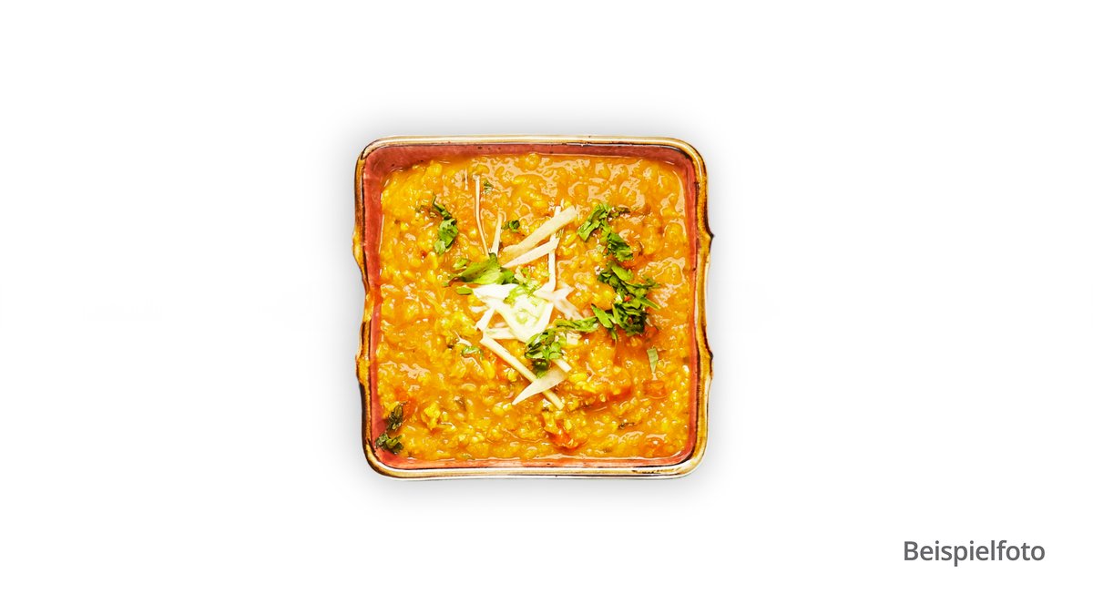 mit zarten Lammfleischstücken, Mandeln, Cashews, Kokosraspeln, Kardamom und mit Sahne verfeinerter milder Kormasoße