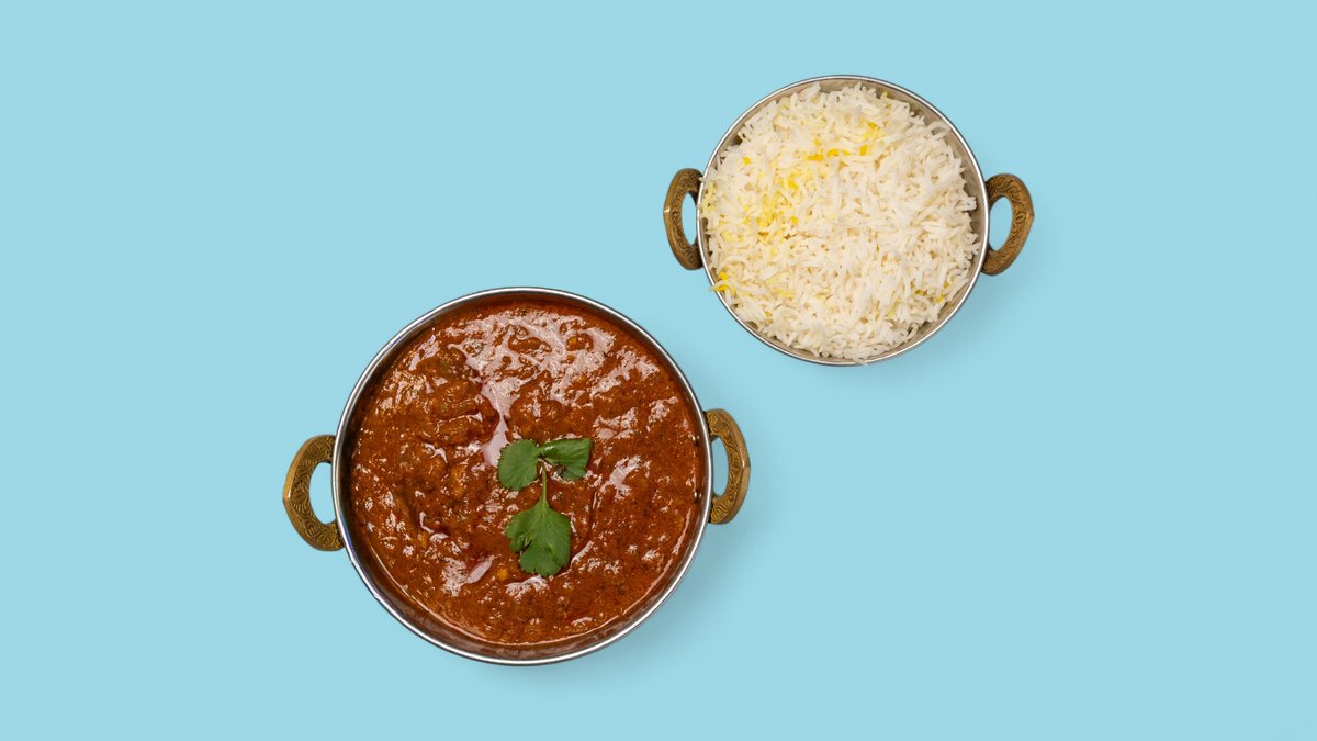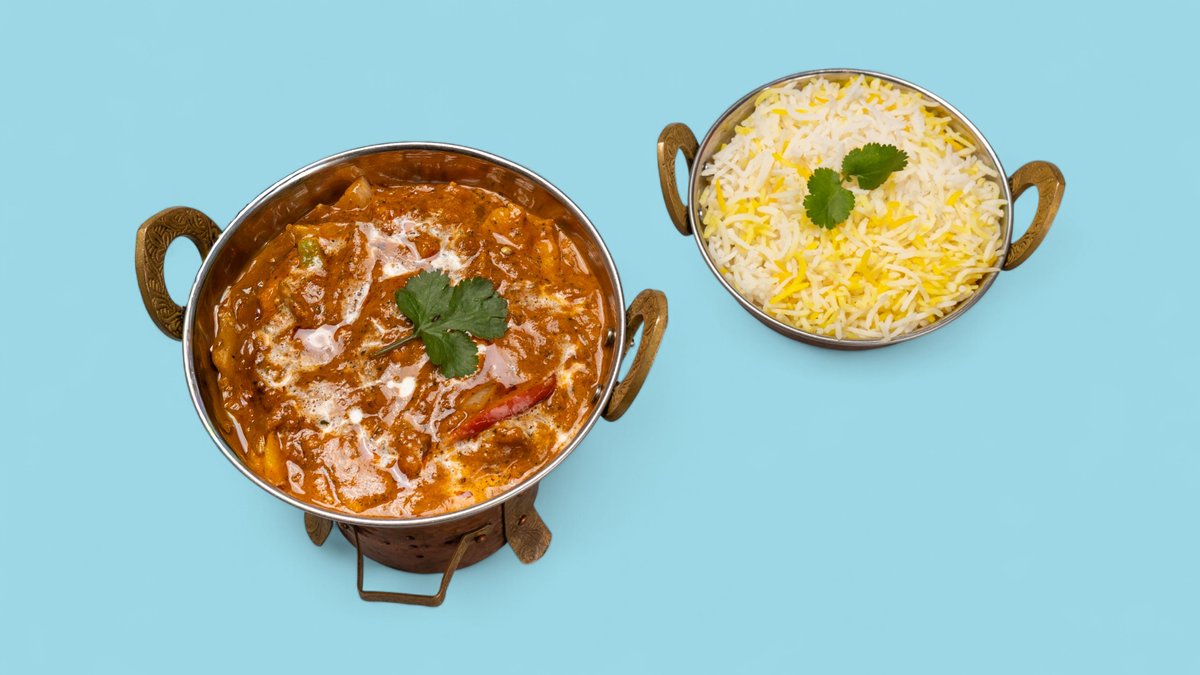 alle Gerichte werden im Karahi-Wok mit Zwiebeln, Paprika, Knoblauch, Ingwer, Tomaten und frischen Kräutern zubereitet und mit Basmatireis serviert